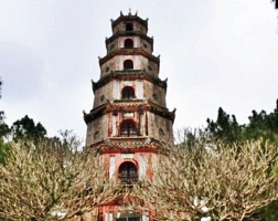 iconic THIEN MU PAGODA, an elegant seven-tiered octagonal tower which has become Hue's most widely